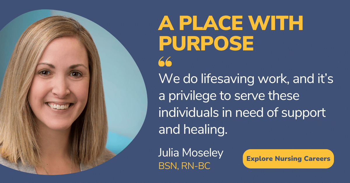 After several years of dedicated intensive outpatient care and helpful mentorship opportunities, Julia expressed her interest in leadership opportunities. She quickly accepted a new role as a nursing supervisor at our inpatient hospital.