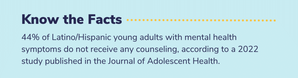 US young adults have the highest rates of mental health conditions of any age demographic. However, many are unable to access mental health services or don’t seek care. This is true of Latino/Hispanic young adults as well.