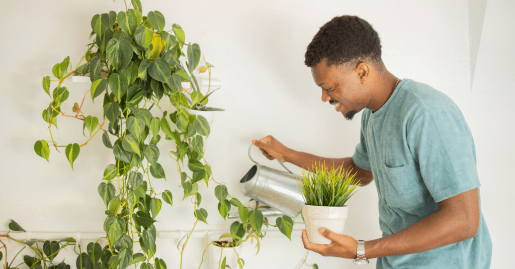 • Decorating with potted plants or fresh flowers to bring mood-boosting elements of nature indoors