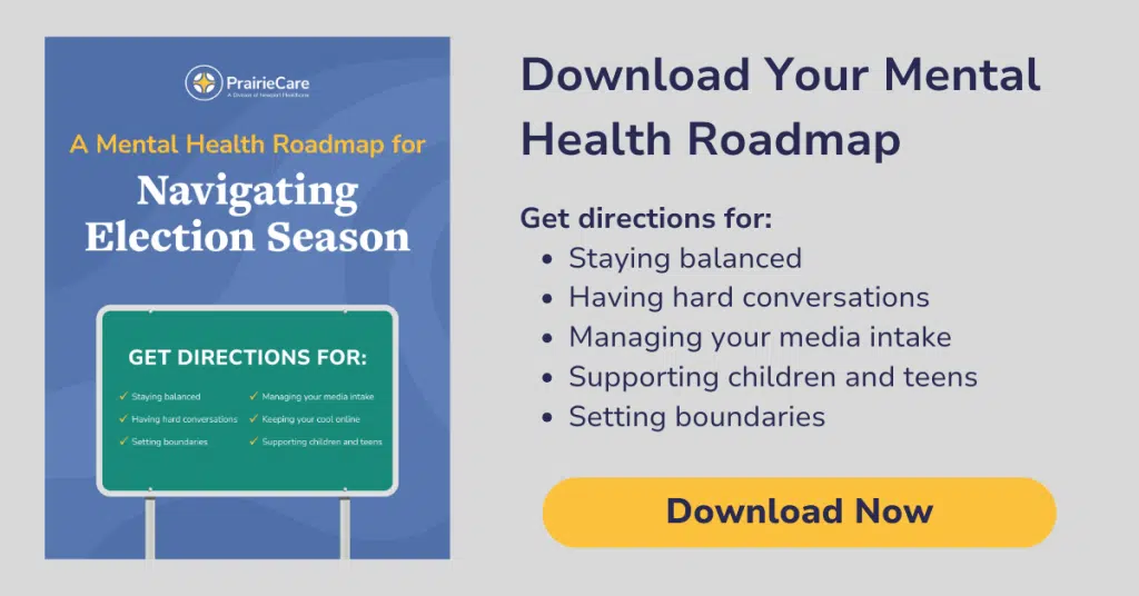 In this article, we guide you on approaching conversations that help you feel empowered and safe during a time that can feel uncertain—without totally cutting off those around you. Also, you can download our Mental Health Roadmap for Navigating Election Season to get more helpful tips on staying balanced, managing your media intake, and supporting teens!