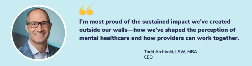 “We exploded the paradigm of what a mental health hospital looks like,” Archbold reflects. “We created beautiful, state-of-the-art facilities powered by multidisciplinary teams focused on the whole person. Since that time, numerous other health systems have renovated their mental health units, invested in partial hospitalization, and designed teams to match our standards. We are proud to be leaders in this space.”