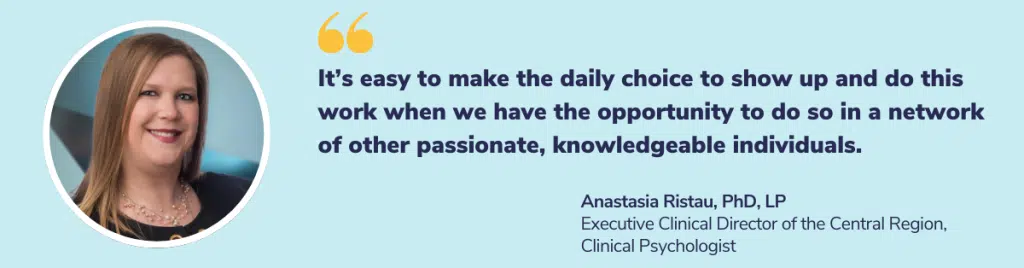 Where do our compassionate and skilled multidisciplinary teams find the motivation to consistently strive for excellence each day? This is challenging and intense work, acknowledges Anastasia Ristau, PhD, LP, Executive Clinical Director of the Central Region and Clinical Psychologist.
