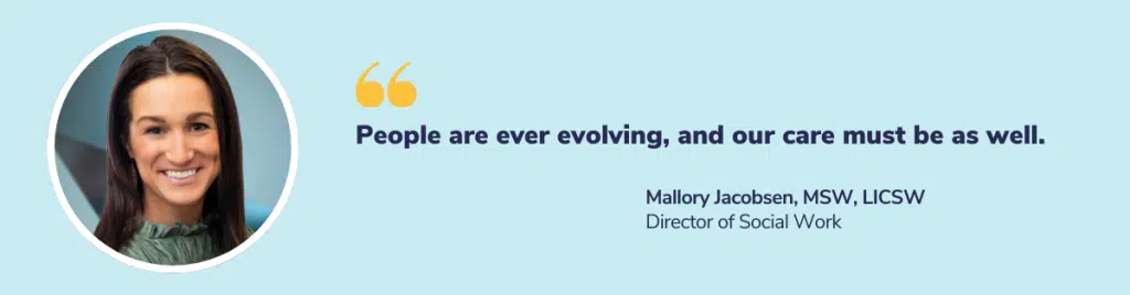 “Our ability to evolve sets us apart,” says Mallory. “For example, we have a strong partnership with the Red Lake Nation to support Native American youth, during care and as they transition back to community-based services. Reducing healthcare disparities opens the door to more equitable outcomes for people of all backgrounds, and we are continually working to remove barriers.”
